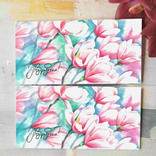 Подарите радость и тепло своим близким с помощью конверта для денег 'Поздравляем'. Этот стильный конверт с ярким дизайном и акварельной иллюстрацией цветущих магнолий станет прекрасным дополнением к любому подарку. Он не только подчеркнет ваше внимание к деталям, но и создаст атмосферу праздника и уюта.
