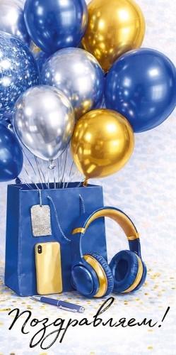 Конверт для денег "Поздравляем!" (синий пакет с шарами) 30002050 (Империя поздравлений)