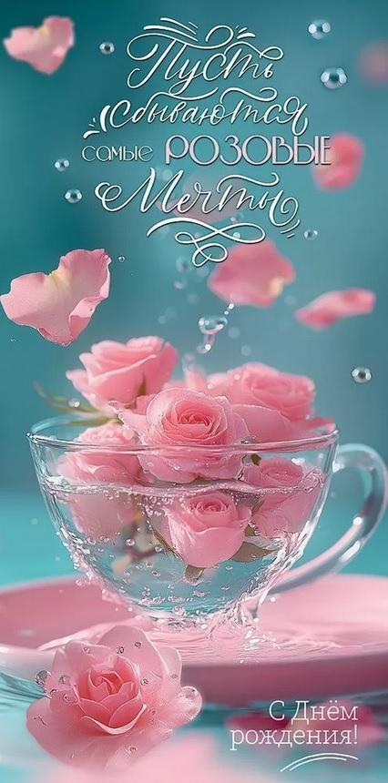 - Нежный дизайн с розовыми цветами создает праздничное настроение