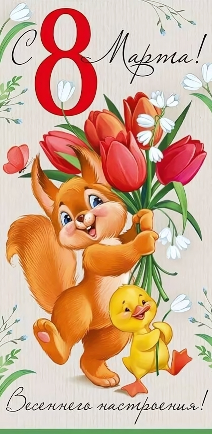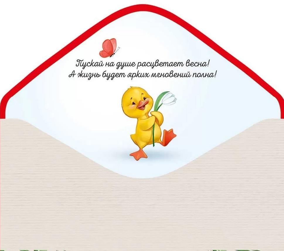 Подарите своим близким радость и весеннее настроение с помощью этого яркого конверта для денег. Он станет отличным дополнением к любому подарку, подчеркивая ваше внимание и заботу. Мультяшные персонажи на конверте, такие как белка и утенок, создают атмосферу праздника и радости, что делает его идеальным выбором для поздравления в Международный женский день.