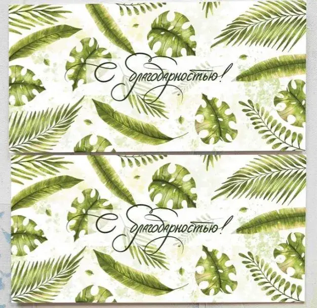 Конверт для денег «С благодарностью!» сочетает элегантность и практичность, позволяя выразить признательность стильно и торжественно. Нежный растительный орнамент с детальной прорисовкой листьев превращает обычный денежный подарок в запоминающийся жест внимания.