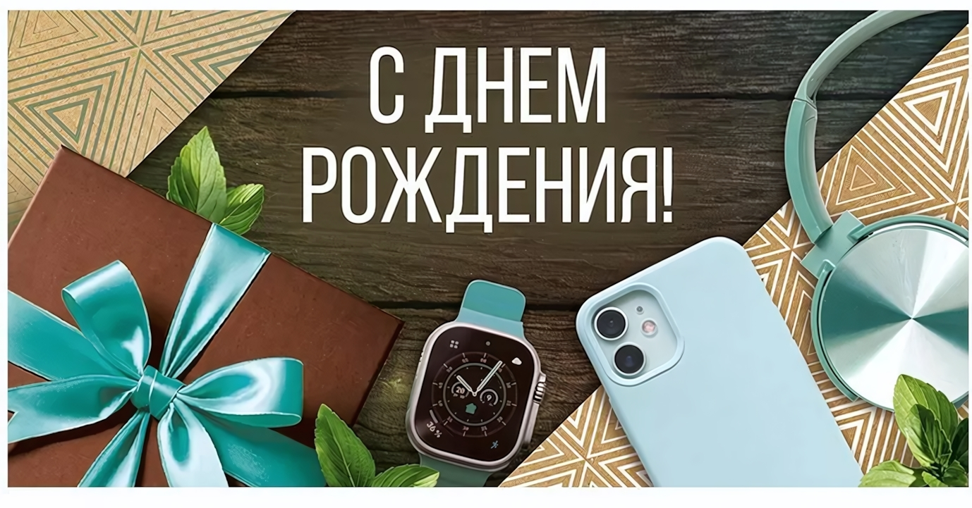 - Оригинальная надпись "С Днем рождения!" делает конверт ярким акцентом среди подарок.