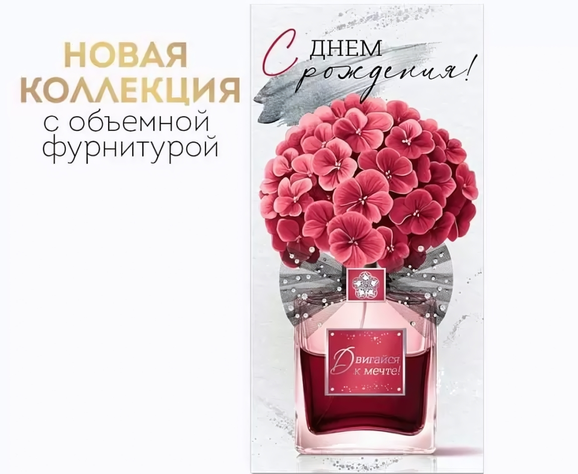 Этот поздравительный конверт станет ярким акцентом любого праздника и оригинальным подарком. Его изящный дизайн с изображением флакона парфюма и объемным цветком, выполненным в технике 3D, создаст праздничное настроение и подчеркнет важность торжества. Конверт поможет красиво поместить любую сумму, подарочный сертификат или билеты на мероприятие, что делает его универсальным и многофункциональным подарком.