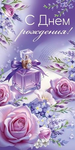 Конверт для денег «С днем рождения!» помогает превратить денежный подарок в полноценное праздничное поздравление. Стильная композиция с флаконом духов и нежными цветами создает атмосферу утонченности и внимания к деталям, а сияющие радужные блестки в лаке добавляют торжественного настроения с первого взгляда.