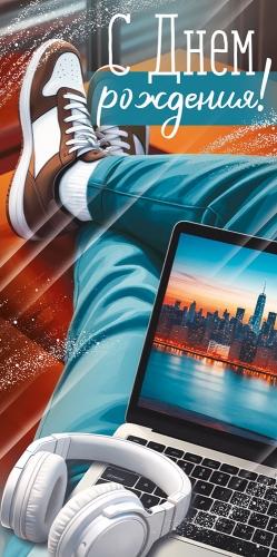 Конверт для денег "С Днем рождения!" (ноги, ноутбук, наушники) 30002081 (Империя поздравлений)