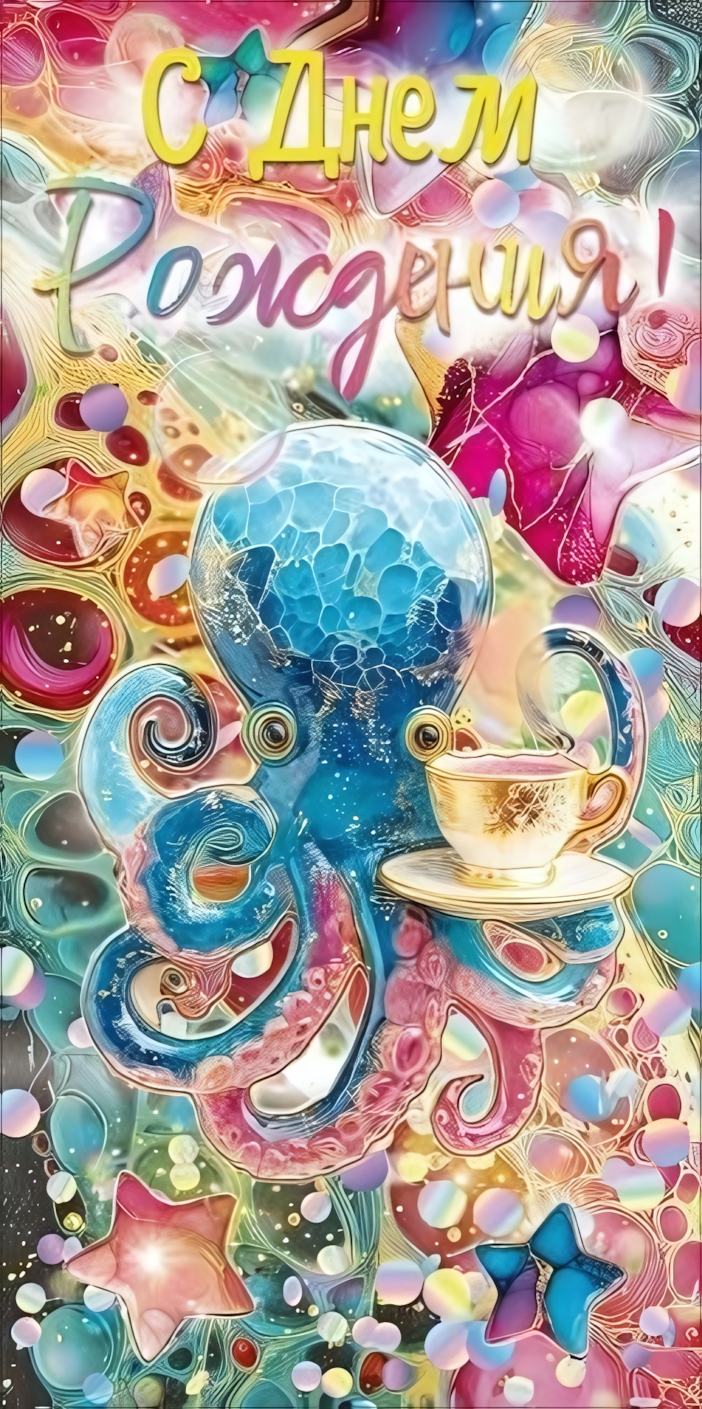 Подарите близным не только деньги, но и праздник с помощью этого яркого конверта. Оригинальный дизайн с изображением осьминога и эффектом блесков превращает стандартный денежный подаров в стильный и запоминающийся презент. Это идеальное решение для тех, кто ценит эстетику и хочет удивить именинника.
