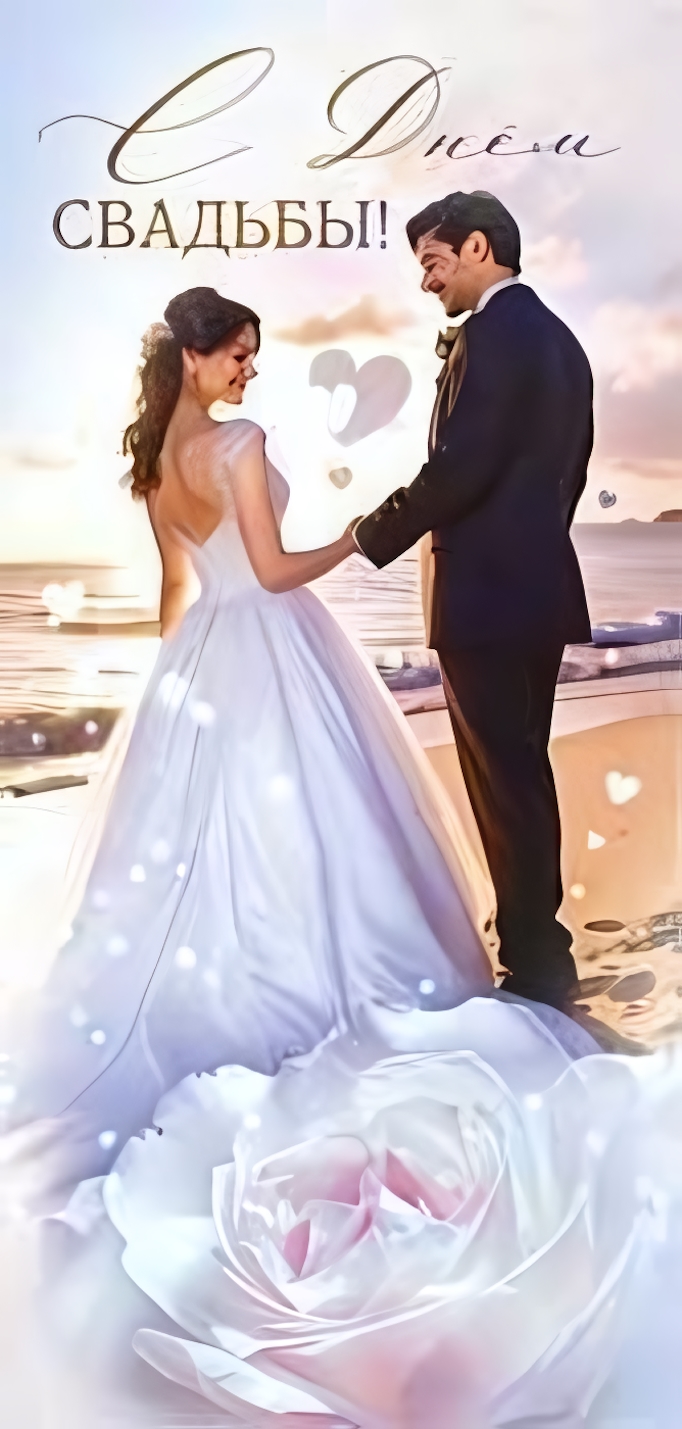 Сделайте ваш денежный подарок особенным с элегантным конвертом 'С днем свадьбы!'. Стильный дизайн и качественная отделка УФ-лаком создают неповторимое впечатление.