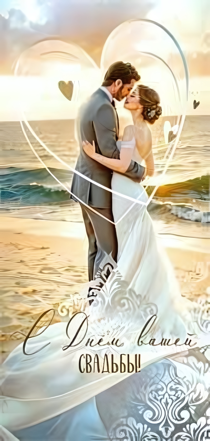 - Романтичный дизайн с изображением молодоженов на фоне заката
