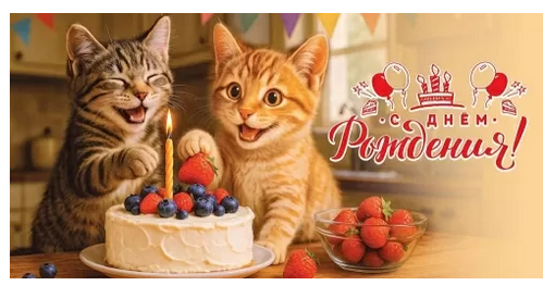 - Развесёлый дизайн с котятами и тортом подарит улыбку получателю.