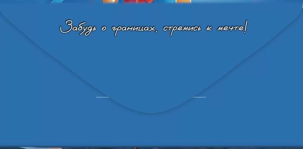 - Специальная надпись 'Забудь о границах, стремись к мечте!' добавляет глубину поздравлению
