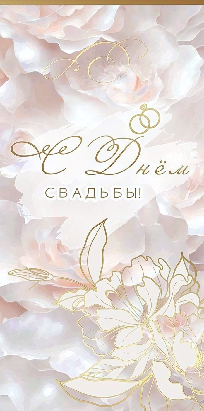 Конверт для денег "С Днём Свадьбы!", евроформат, лак soft-touch, золотая фольга, Россия