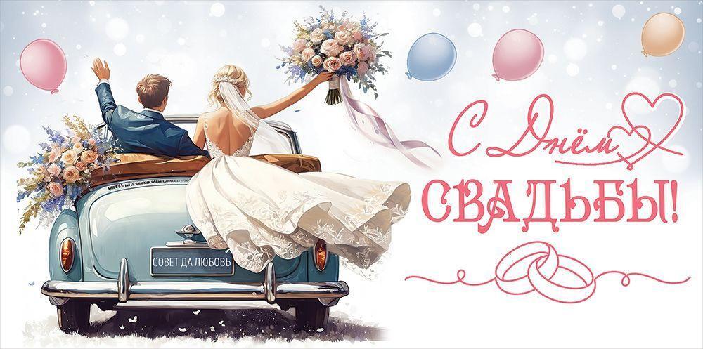 Конверт для денег 'С Днём Свадьбы!', формат Евро, глянцевая отделка