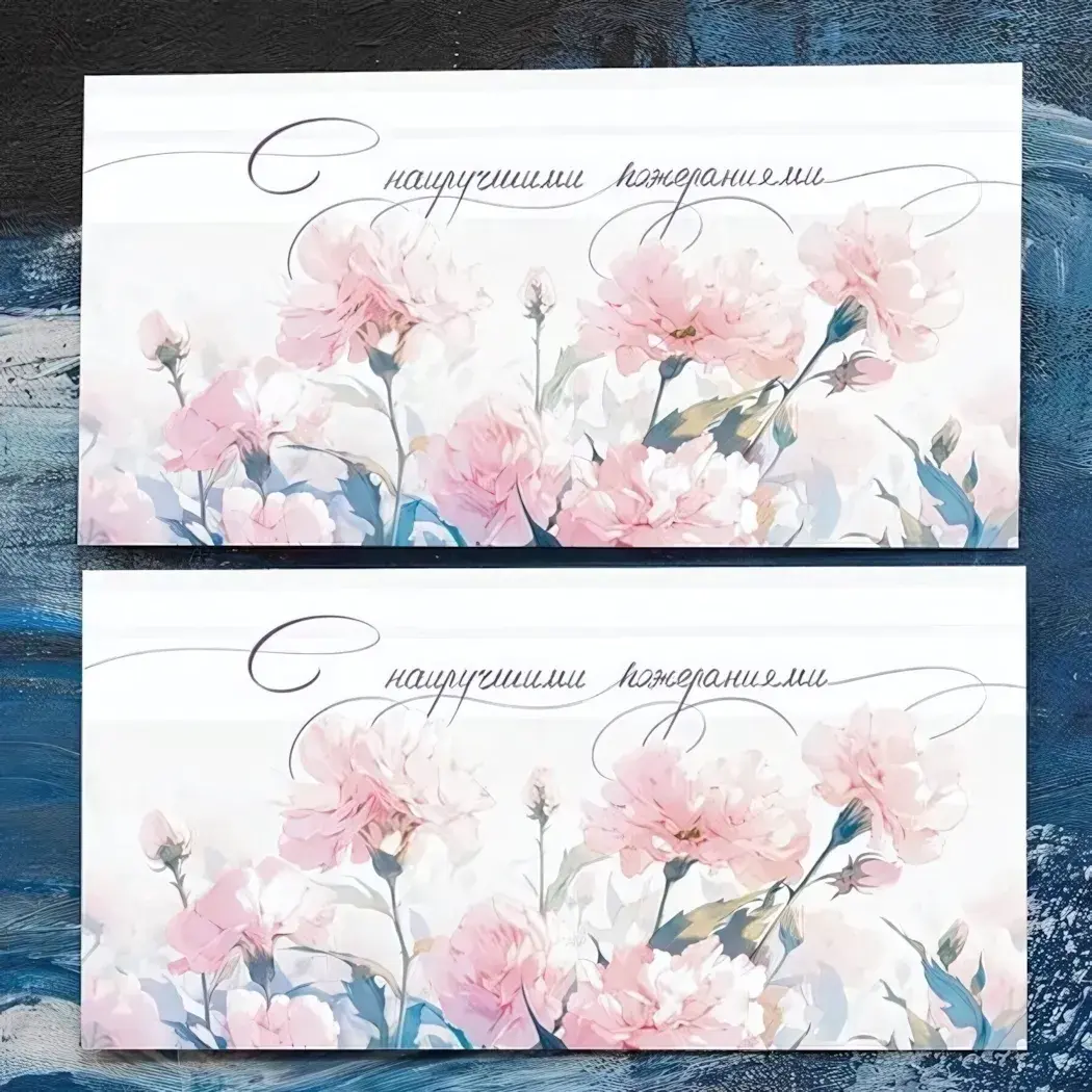 Подарите своим близким радость и тепло с конвертом для денег «С наилучшими пожеланиями». Этот стильный конверт с нежным floral-дизайном и изображением розовых гвоздик станет идеальным дополнением к любому подарку. Он не только подчеркнет вашу заботу, но и добавит особую атмосферу праздника.