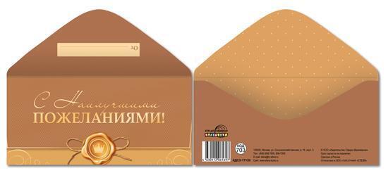 Конверт выполнен из плотного картона, что обеспечивает его долговечность и сохранение нарядного внешнего вида на протяжении долгого времени. На лицевой стороне конверта написано «С Наилучшими Пожеланиями!», а также предусмотрено место для написания имени получателя, что добавляет индивидуальности вашему подарку.