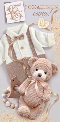 Конверт для денег "С рождением сына!" (костюмчик, мишка) 10000608 (ГК Горчаков)