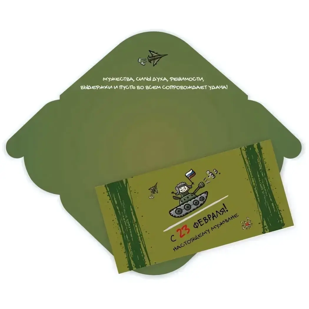 Подарочный конверт с динамичным дизайном станет идеальным дополнением к денежному подарку на День защитника. Яркое оформление с боевой техникой подчеркнёт мужественность и характер адресата.