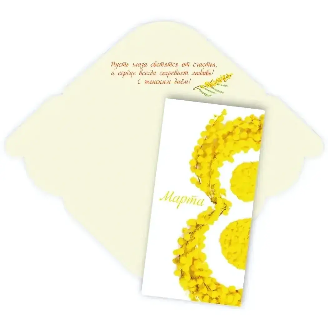 Конверт для денег «Мимоза» к 8 Марта, бумага, стандарт, дизайн с цветами и цифрой 8