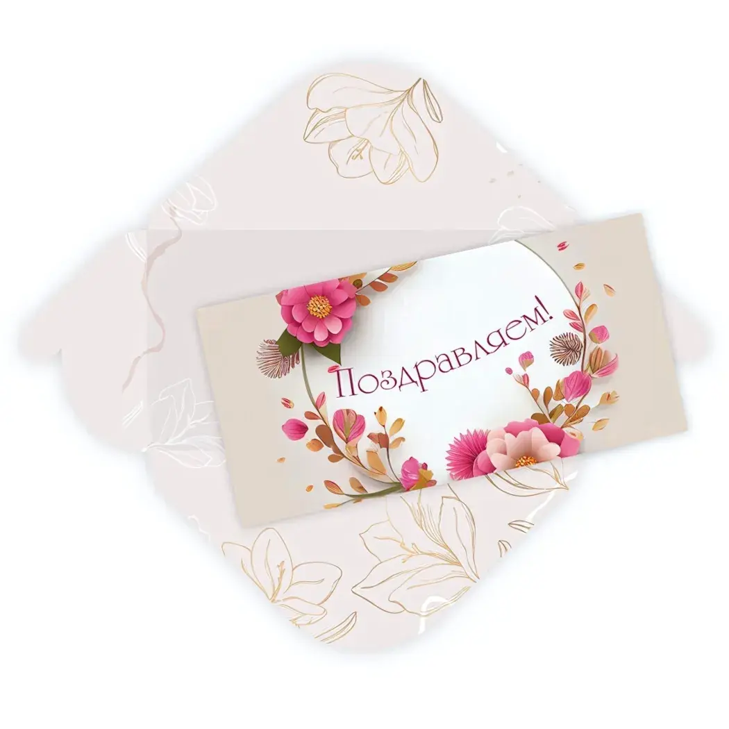 Элегантный конверт для денег «Поздравляем - Изящные цветы»