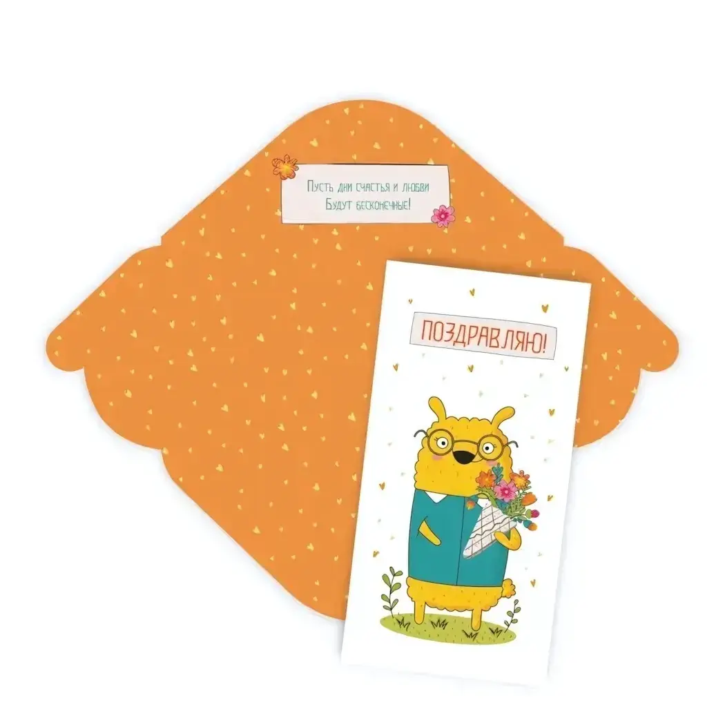 Подарите радость и тепло своим близким с помощью нашего конверта для денег стандарт поздравляю «С букетом». Этот конверт станет идеальным дополнением к любому подарку, добавляя нотку стиля и оригинальности. Яркий оранжевый цвет с мелким золотистым рисунком в виде цветочков создает атмосферу праздника и радости, а внутренний текст «Пусть дни счастья и любви будут бесконечными!» добавляет искренности и тепла вашему поздравлению.