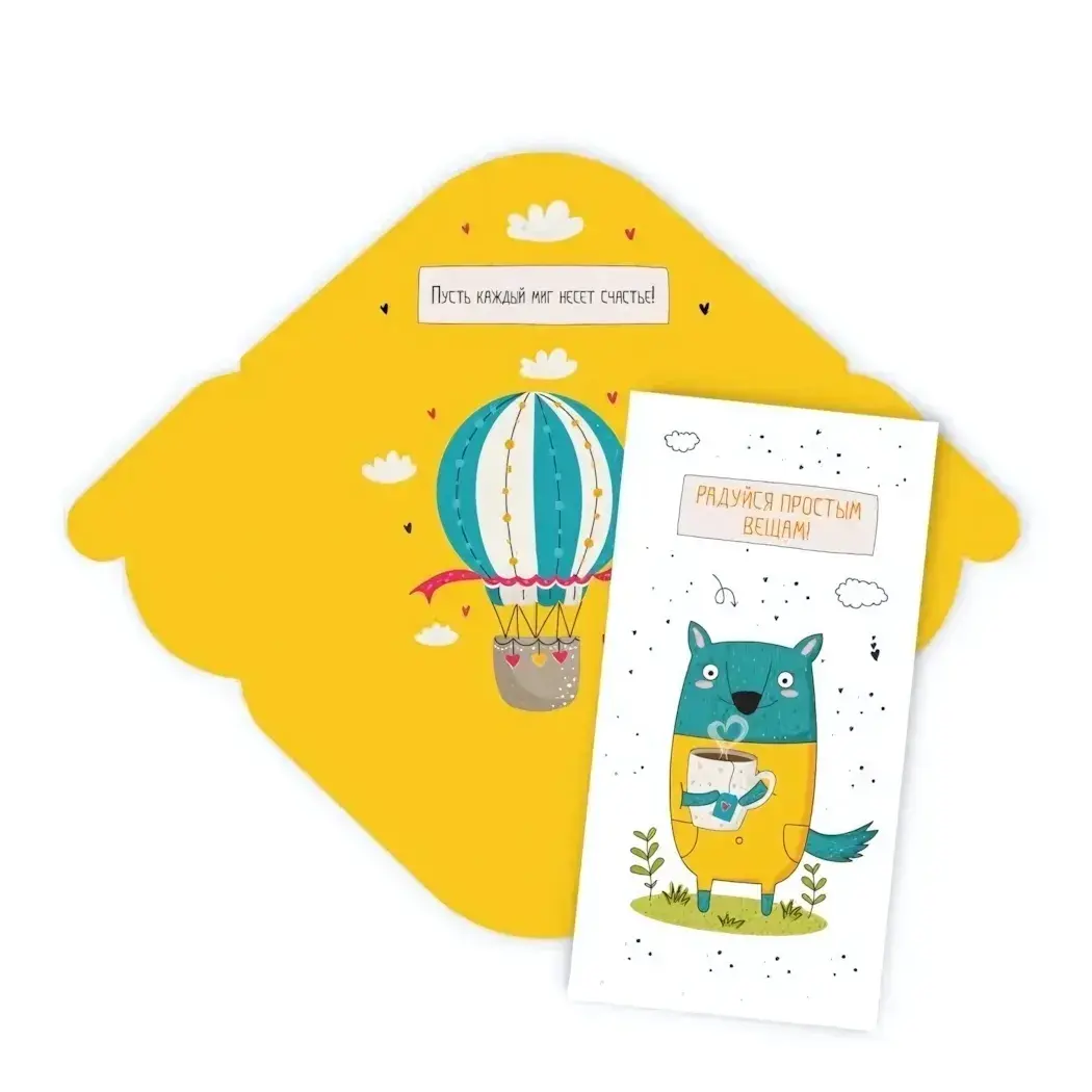 Подарите радость и позитив с конвертом для денег стандарт «Радуйся простым вещам». Этот яркий желтый конверт с иллюстрацией воздушного шара и вдохновляющей надписью станет отличным дополнением к любому подарку. Он не только украсит ваш презент, но и создаст атмосферу праздника и счастья.