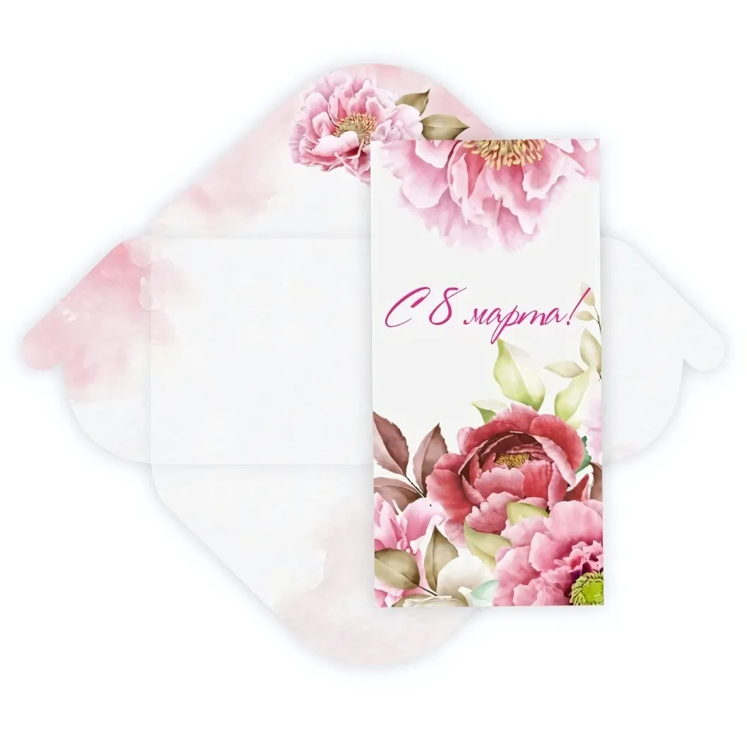 Сделайте ваш денежный подарок к Международному женскому дню по-настоящему трогательным и запоминающимся. Этот элегантный конверт с нежными акварельными пионами превратит простое вручение денег в полноценный праздничный ритуал, наполненный теплом и вниманием.