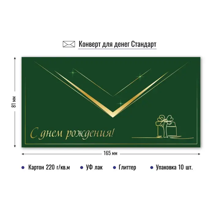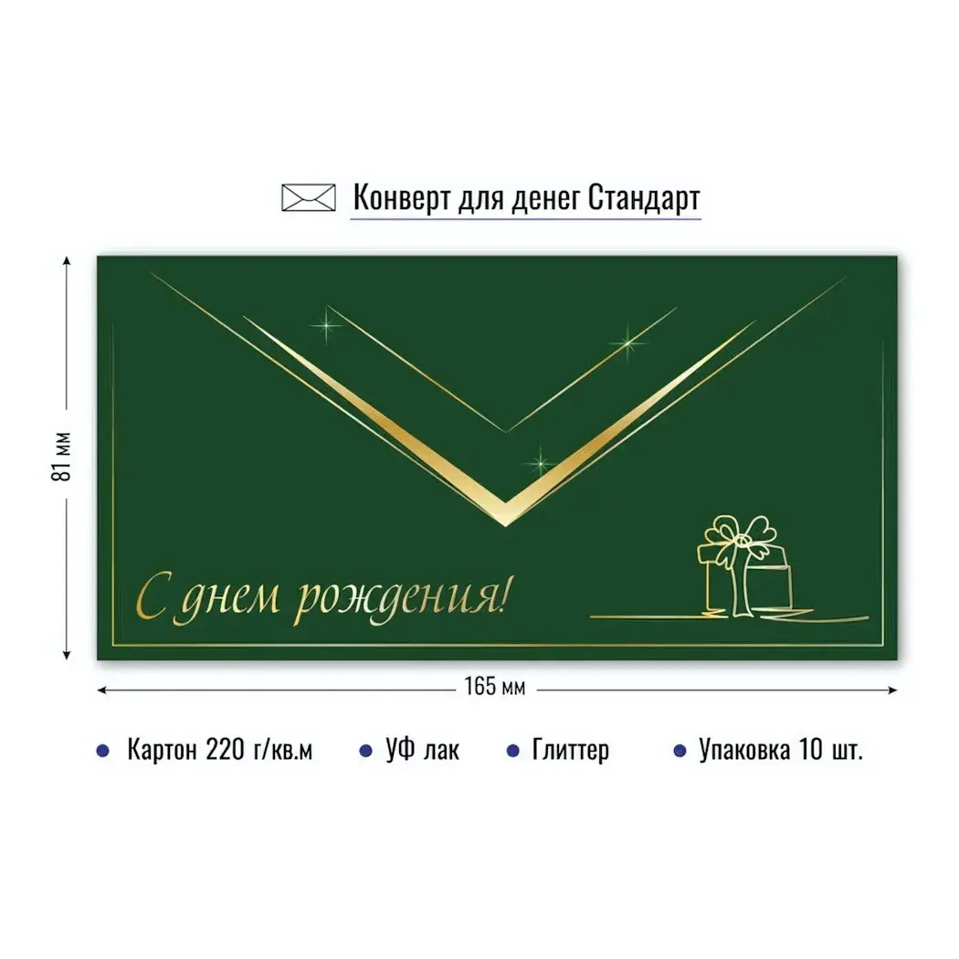 Подарите денежный подарок с особым вниманием к деталям! Плотный картон с золотистым глиттером создаёт праздничное настроение, а удобный формат сохранит купюры в идеальном состоянии.