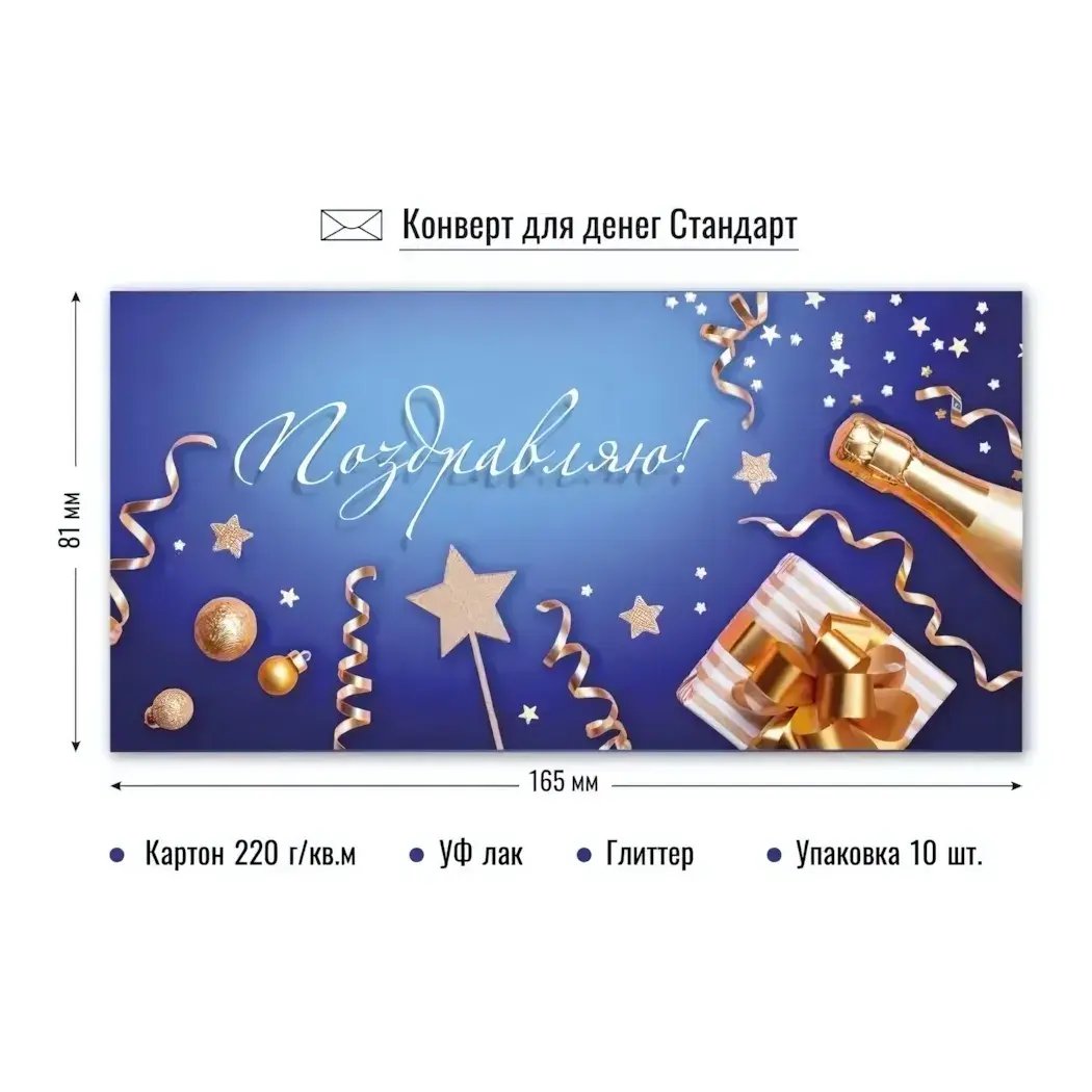 Праздничный конверт с дизайном, который подчеркнёт ваше внимание к деталям. Идеальный выбор для денежных подарков на день рождения, юбилеи и торжественные события.