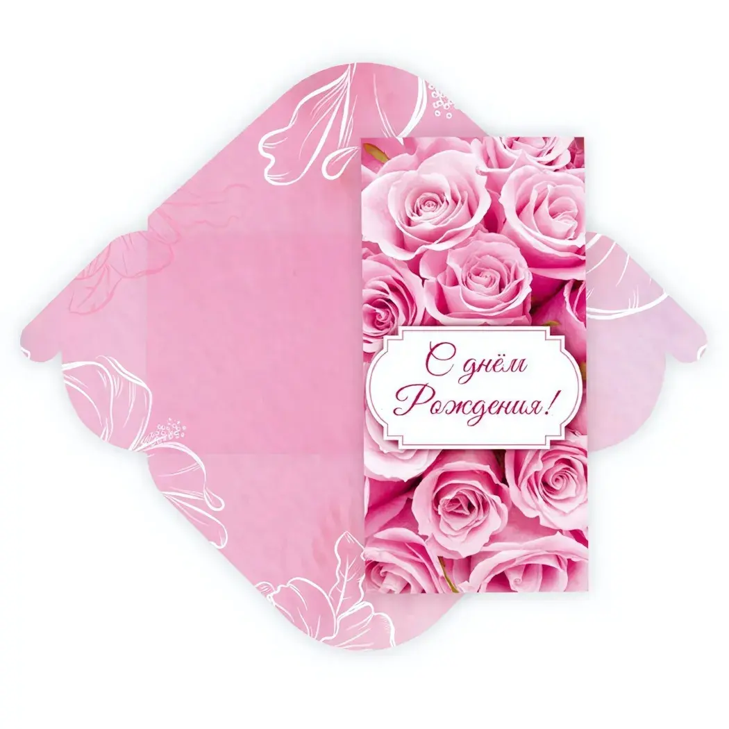 Подарите своим близким радость и тепло в день их рождения с помощью этого стильного конверта для денег. Он выполнен в нежных розовых тонах и украшен изящными цветочными узорами, что делает его идеальным дополнением к любому подарку. Конверт не только практичен, но и эстетически привлекателен, что добавляет особую атмосферу праздника.