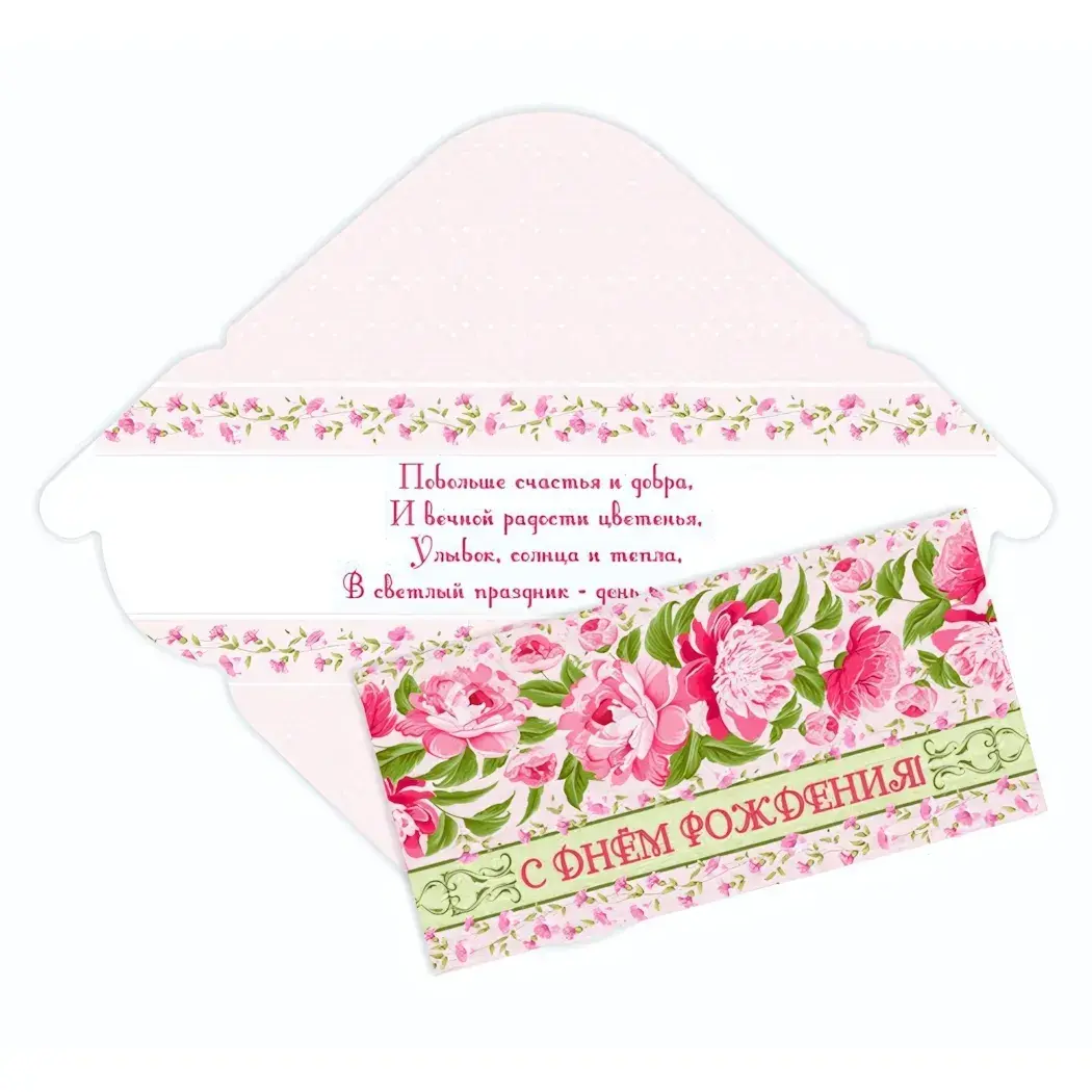 Праздничный конверт для денег «С Днём Рождения - Бутоны»