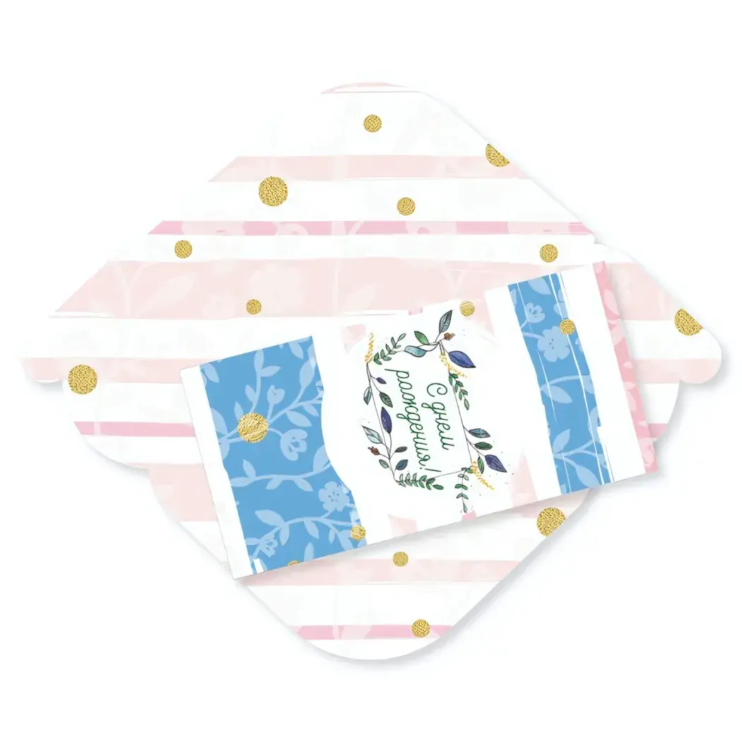 Конверт предназначен для упаковки денежных подарков, а также может использоваться как открытка с поздравлением. Он идеально подходит для всех, кто хочет сделать свой подарок более личным и запоминающимся. Внутри конверта находится карточка с надписью «С днём рождения», что добавляет особый штрих к вашему поздравлению.