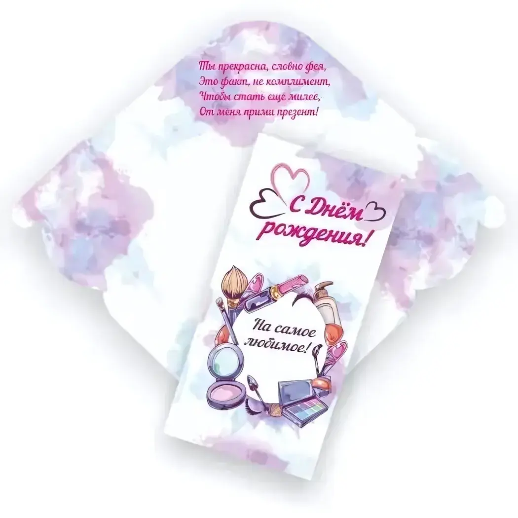 Этот конверт создан специально для тех, кто ценит внимание к деталям. Его нежная цветовая гамма и изысканный дизайн с элементами косметики придадут вашему подарку особый шарм и индивидуальность.