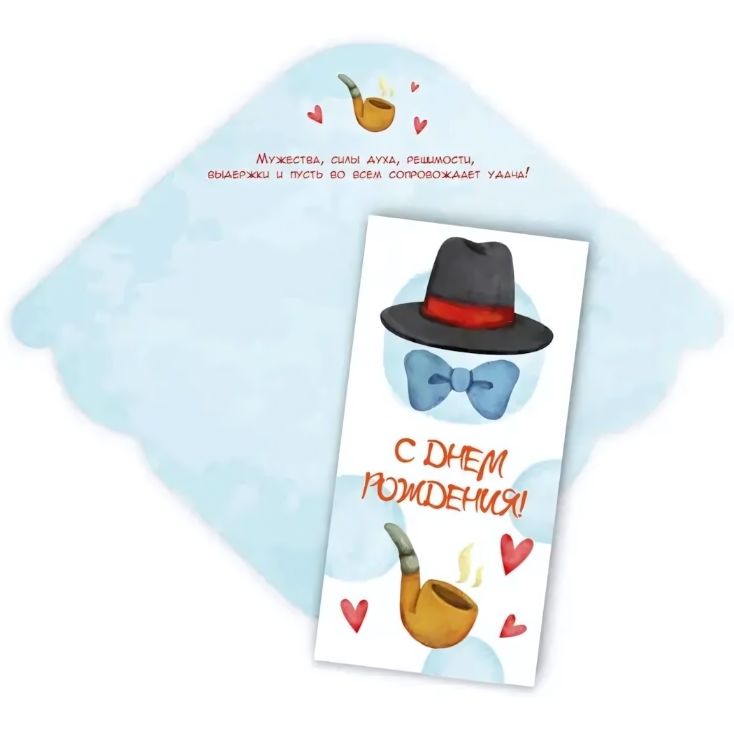 Конверт для денег «С днём рождения», праздничный дизайн с облаками и шляпой, бумага, бело-голубой