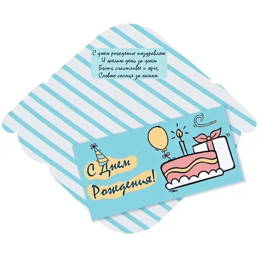Конверт для денег 'Задуй свечу' создан, чтобы превратить простое поздравление в трогательный момент. Уникальный дизайн с изображением праздничного торта и воздушного шарика вызовет улыбку и приятные эмоции у именинника.