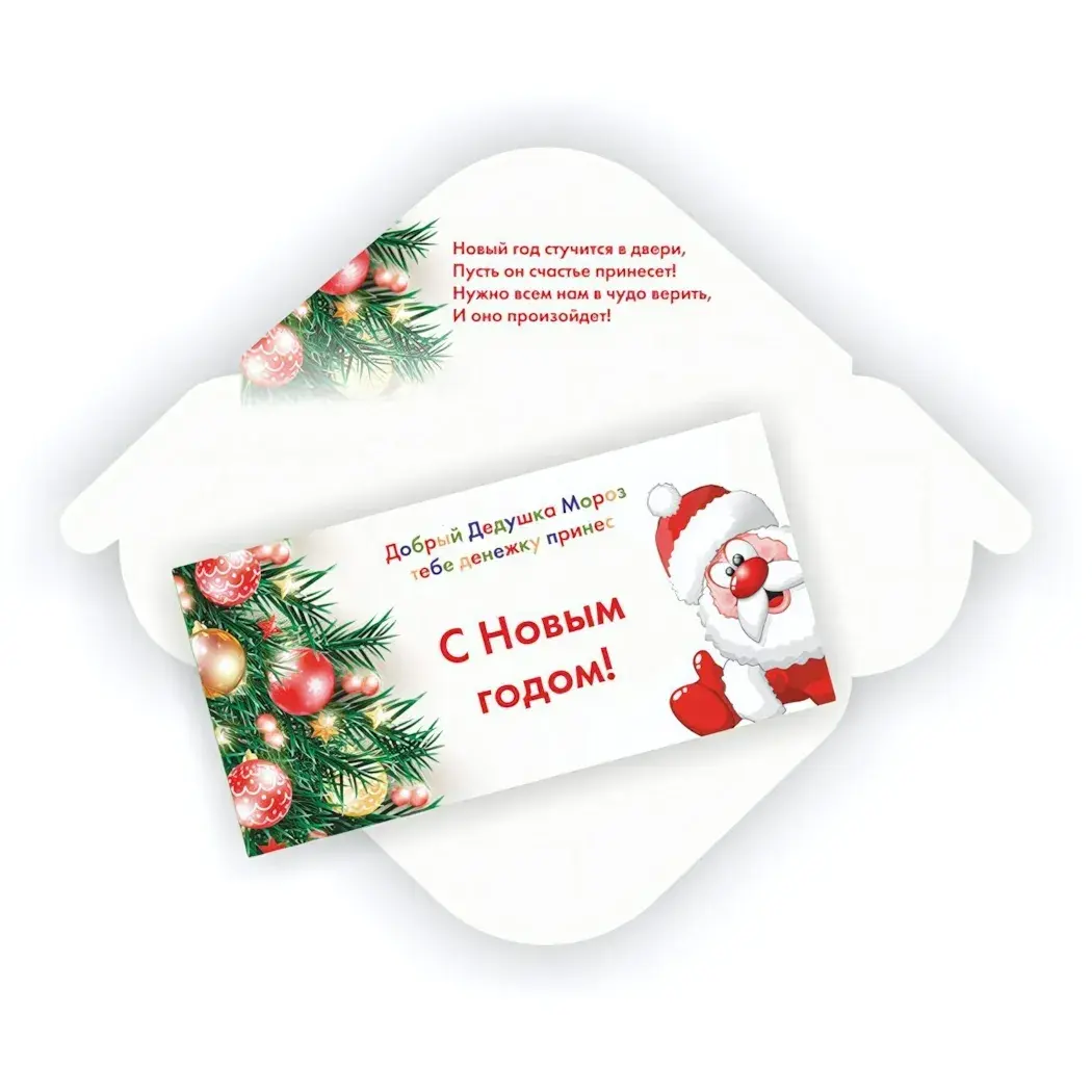 Порадуйте близких не только деньгами, но и особой подачей. Конверт для денег 'С новым годом - Дед Мороз' создаст праздничное настроение и станет запоминающимся дополнением к вашему презенту.