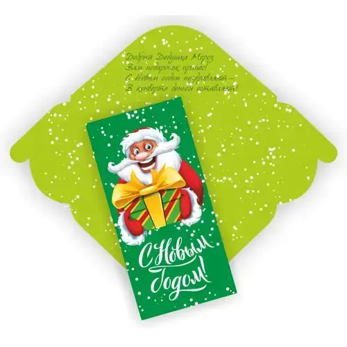 Создайте яркое новогоднее настроение с этим праздничным конвертом, выполненным из качественной бумаги. Идеален для подарка или поздравления на Новый год, красиво оформлен с изображением Санта Клауса, что добавляет особого очарования и праздничности.