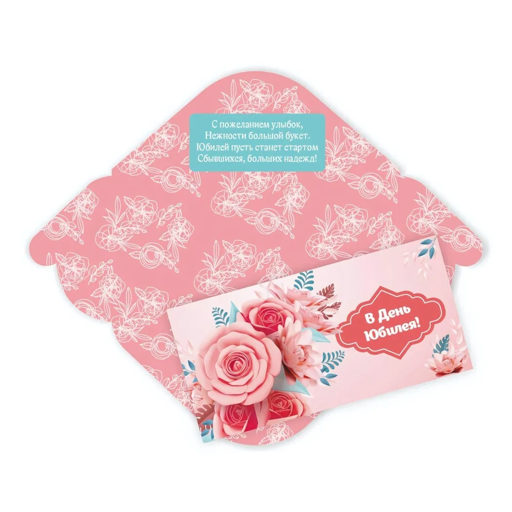 Не упустите возможность сделать ваш подарок особенным с конвертом для денег «В День Юбилея-Цветы»!