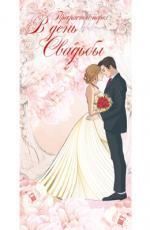- Тематический дизайн с изображением пары молодожёнов и цветочными орнаментами