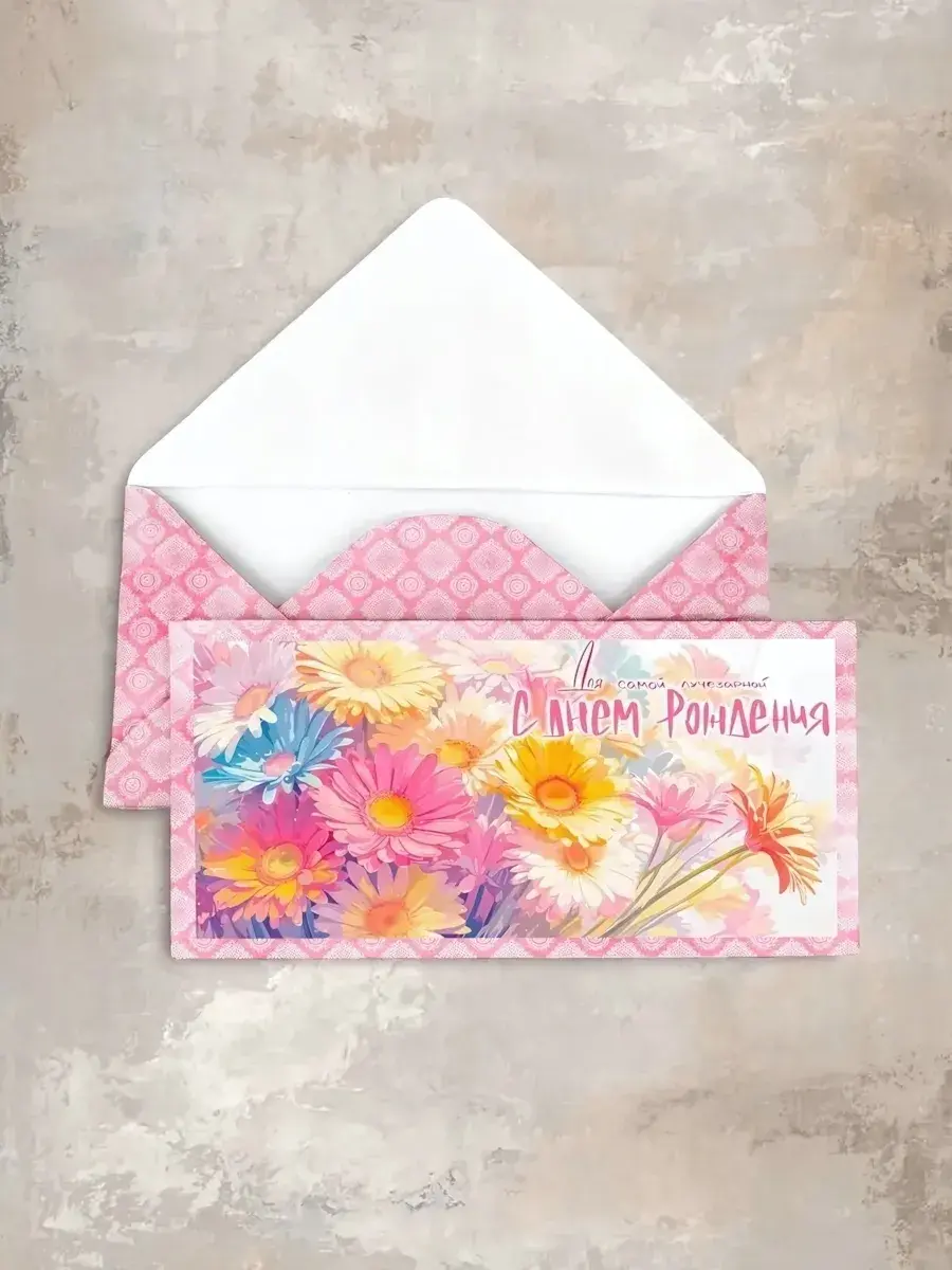 Выбирая этот конверт, вы получаете не только красивую упаковку, но и возможность выразить свои чувства. Яркий цветочный рисунок на открытке внутри конверта добавляет индивидуальности и делает поздравление более запоминающимся. Конверт легко открывается и закрывается, что обеспечивает удобство использования.