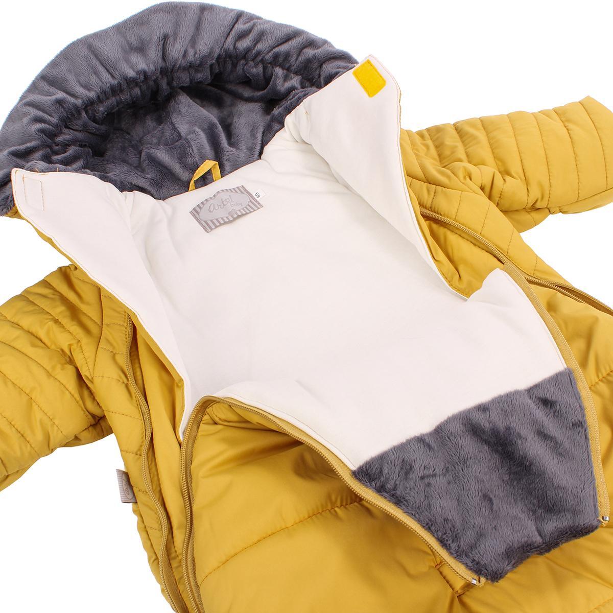 Внешний материал — полиэстер с водоотталкивающей пропиткой, внутренний — хлопковый интерлок и мягкий мех в капюшоне (вельбоа). Размер 0,5 (68) идеально подходит для малышей раннего возраста, обеспечивая удобство и свободу движений.
