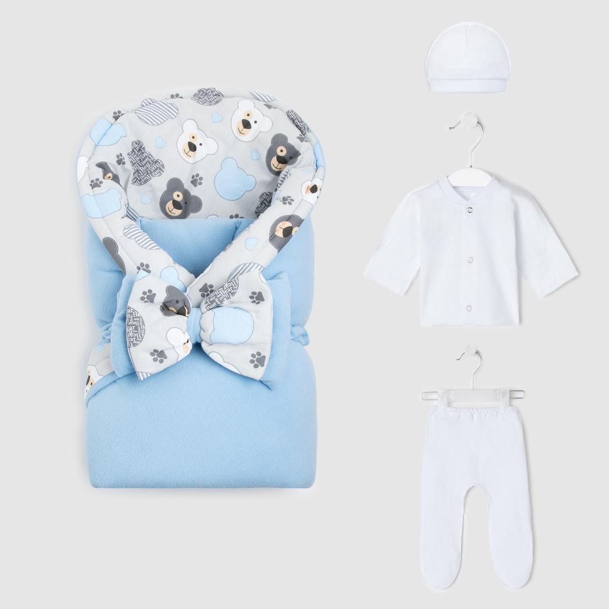 Конверт на выписку "Сказка" с комплектом одежды, флис, хлопок, голубой