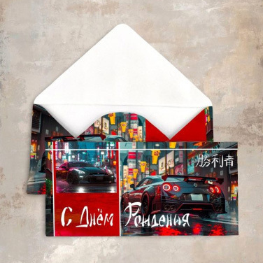Сделайте поздравление запоминающимся благодаря стильному конверту «С Днем Рождения!» в автомобильной тематике. Белоснежная внешняя сторона дополняется ярко-красной внутренней частью, что создает контраст и привлекает внимание.