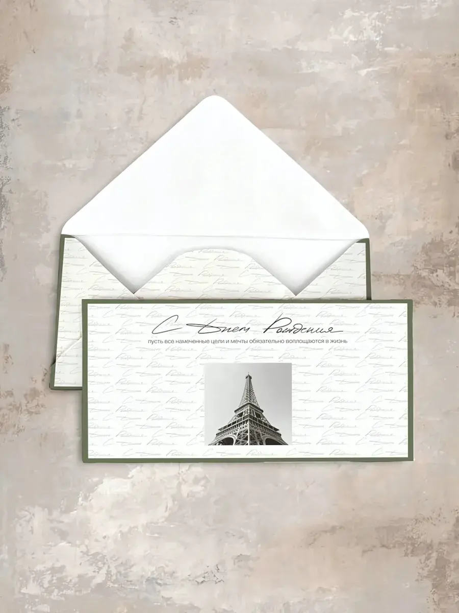 Праздничный конверт «С Днем Рождения» с Эйфелевой башней