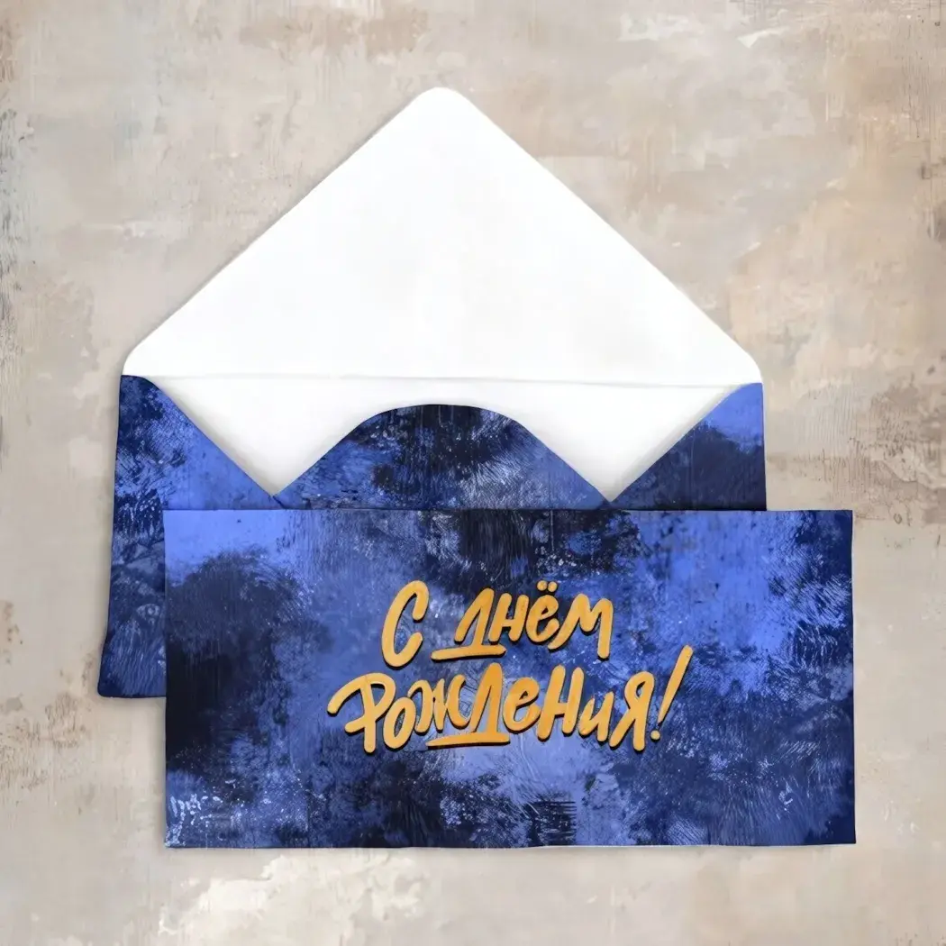 Создайте незабываемый момент вручения подарка с элегантным конвертом 'С Днем Рождения!'. Его благородный синий цвет и качественное исполнение из плотного картона придадут вашему поздравлению особую торжественность.