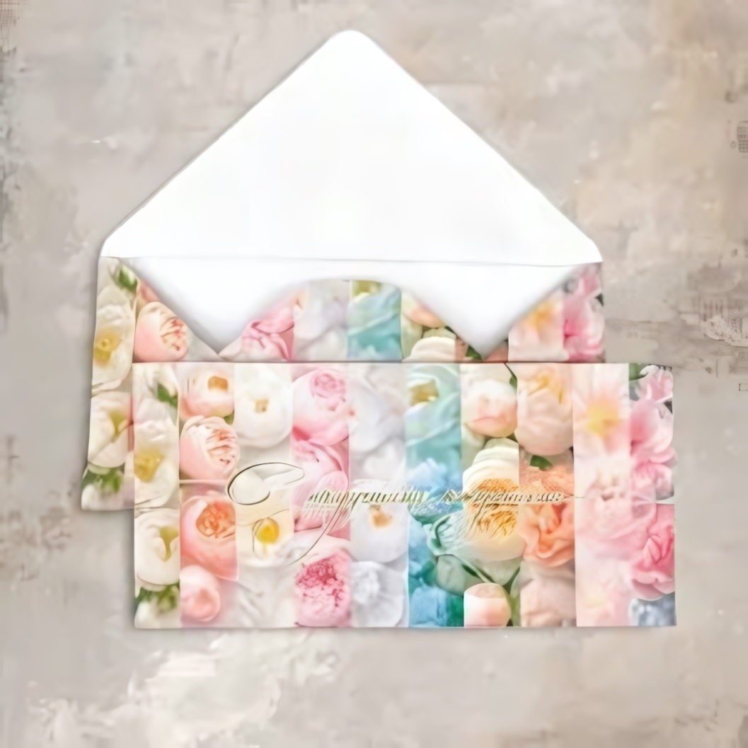 Конверт «С наилучшими пожеланиями» — это идеальное дополнение к вашему подарку, которое подчеркивает торжественность и значимость момента. Изящный цветочный узор, выполненный в нежных пастельных тонах, создает атмосферу радости, тепла и эстетики. Такой аксессуар прекрасно подходит для вручения денежных подарков, билетов, сертификатов или небольших открыток на свадьбу, день рождения, юбилей или любой другой важный праздник.