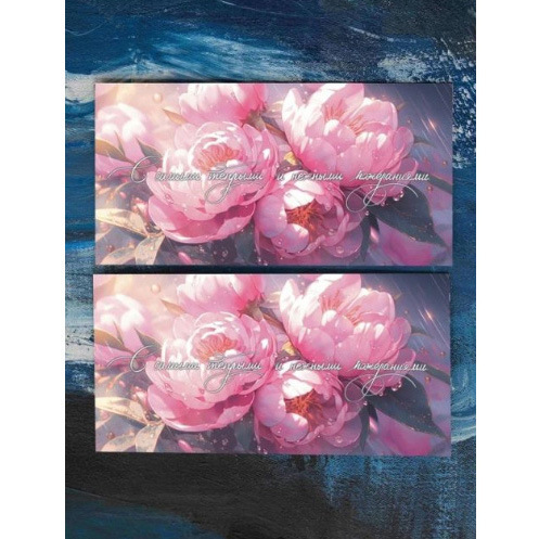Конверт поздравительный "С нежными пожеланиями", картон, цветы пионы