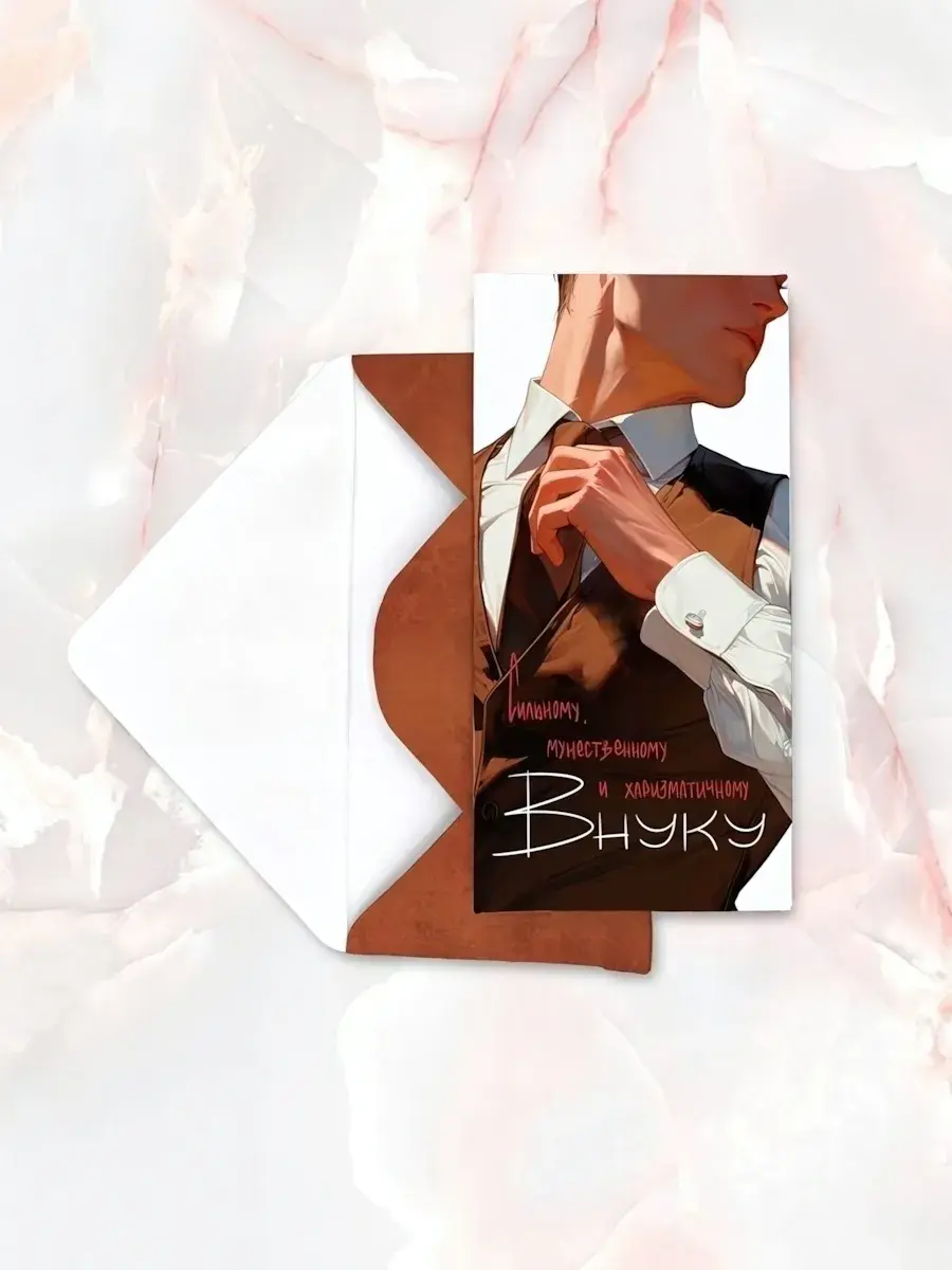 Поздравительный конверт с открыткой «Сильному внуку», бумага, коричневый, 15х10см, серия Cn304