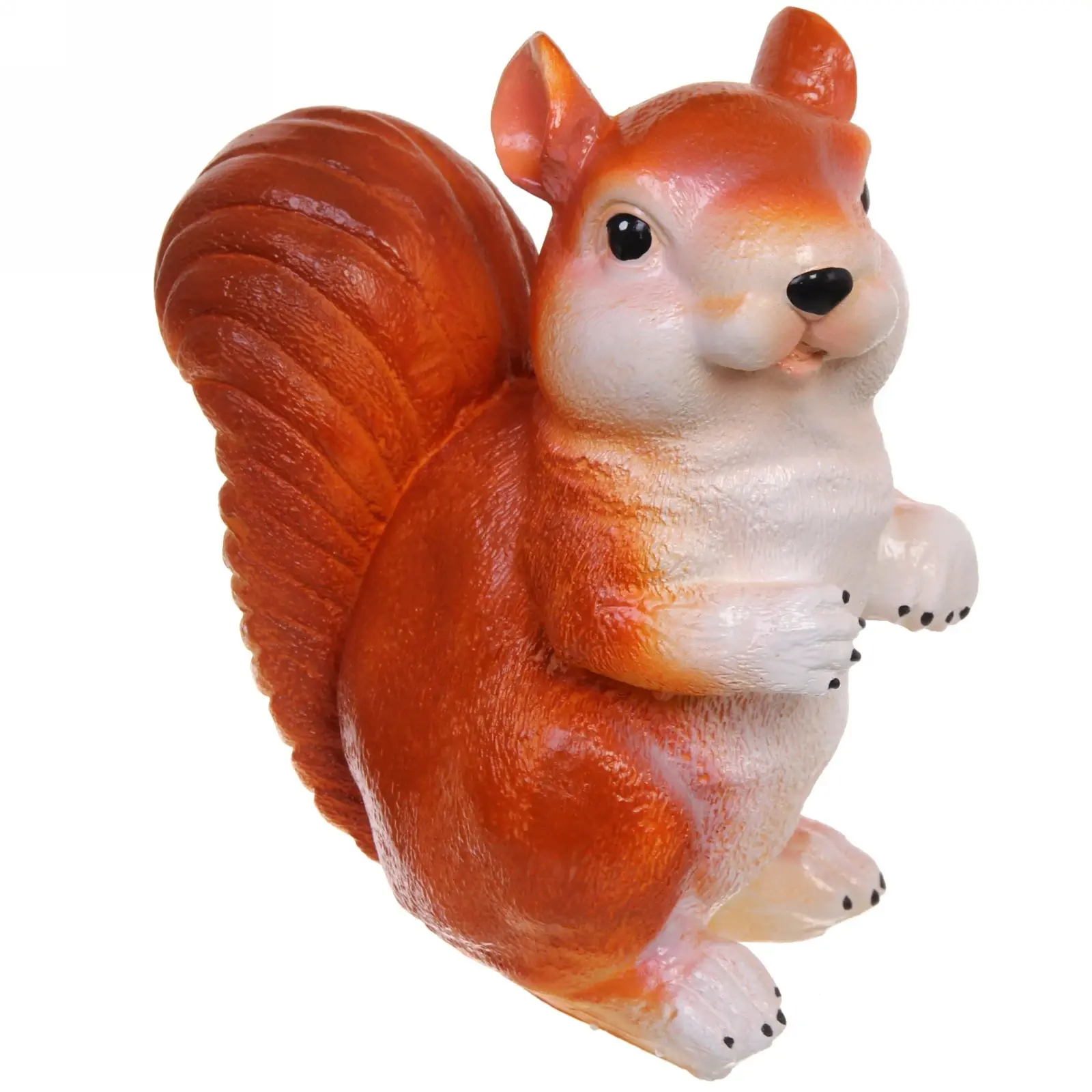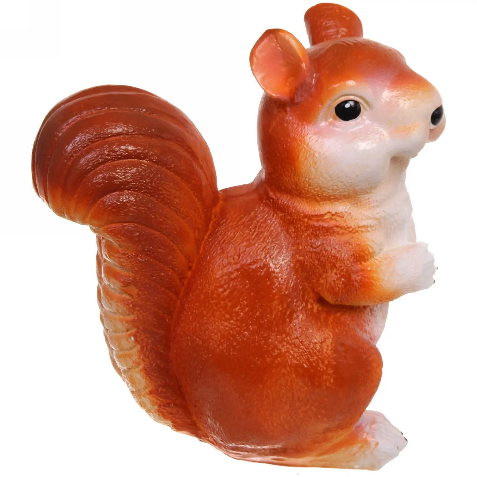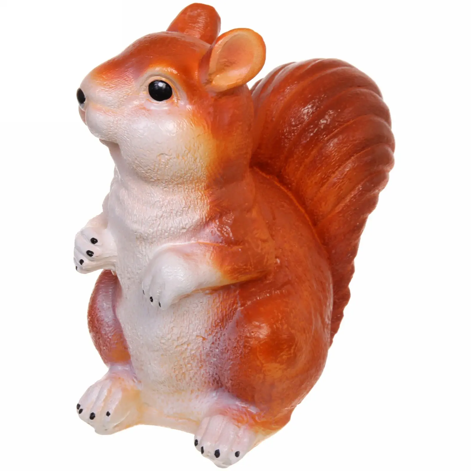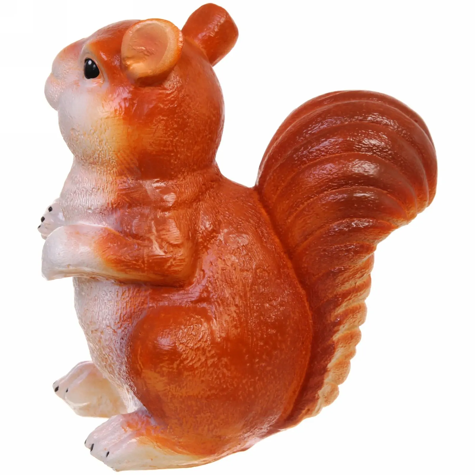Размер изделия около 25 см в высоту; гипсовый материал с гладкой глянцевой поверхностью; выполнена в рыжих и белых оттенках, создающих живой, реалистичный образ белки.