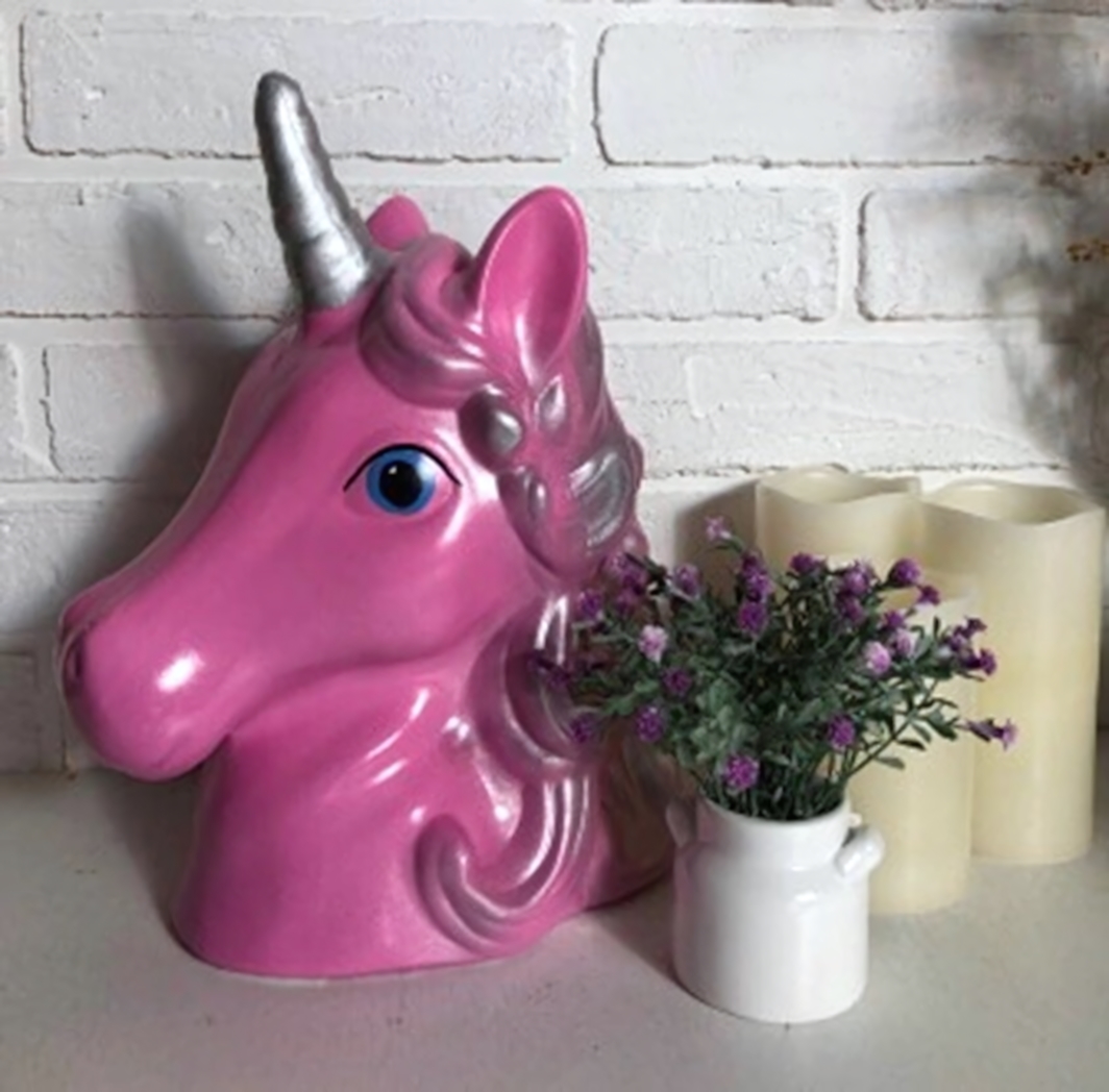 - Выразительный дизайн: Детально проработанная форма головы единорога с гривой, ушами и рогом. Основной нежный розовый цвет гармонично сочетается с серебристыми акцентами на гриве и роге, создавая благородный вид.