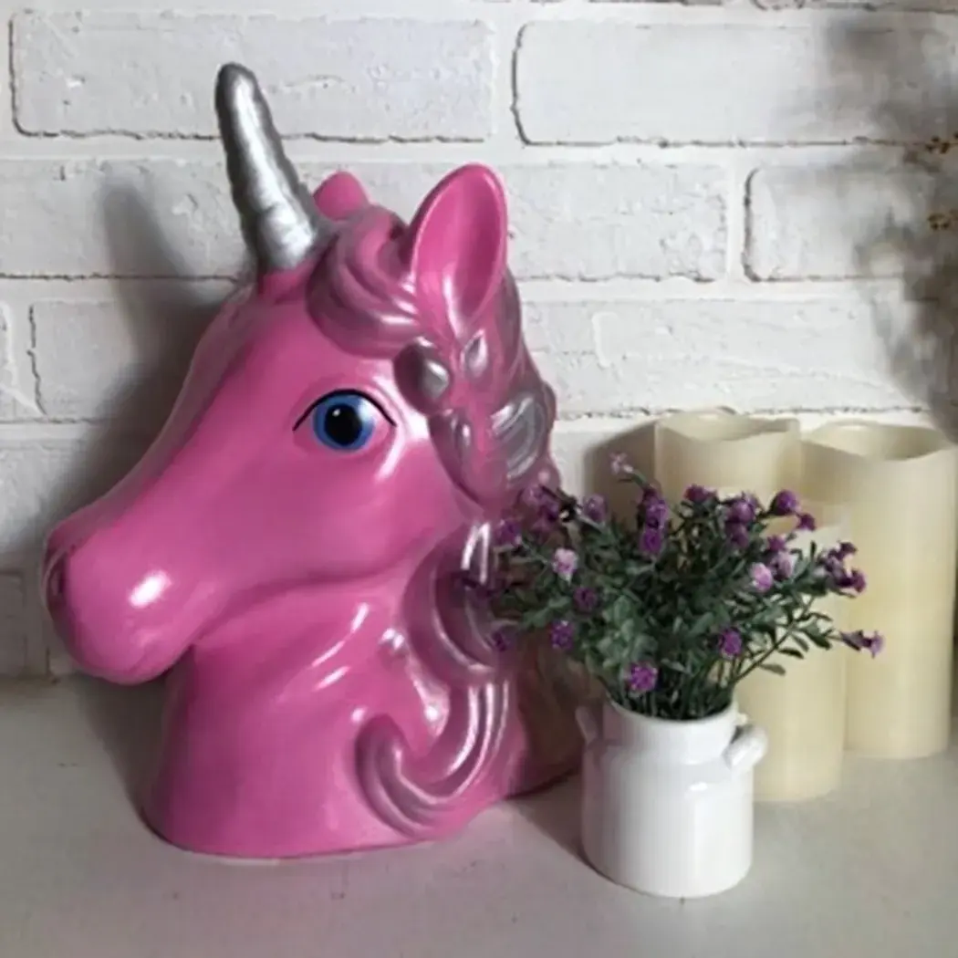Копилка гипсовая "Единорог", розовая, 32см, с серебристым рогом