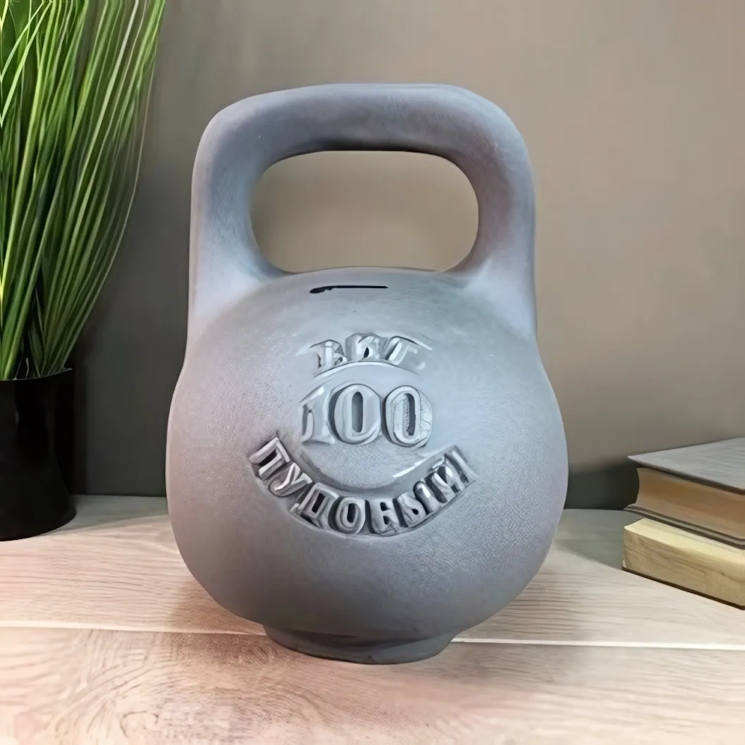 - Уникальный дизайн: Форма классической спортивной гири узнаваема и символична. Рельефная надпись «100 ПУДОВЫЙ» добавляет изделию индивидуальности и смысла, намекая на силу ваших накоплений.
